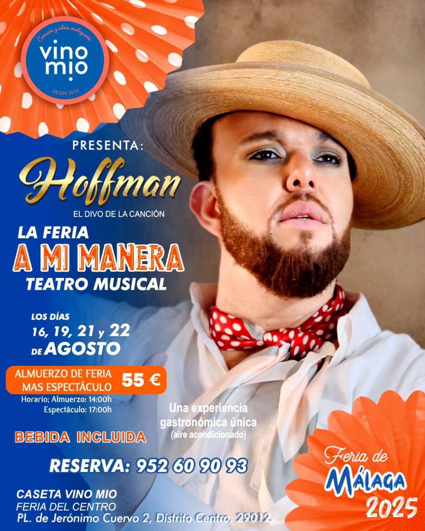 Desde 2003, con 21 años de experiencia, recibimos a nuestros comensales en un entorno elegante y relajado, ubicado junto al Teatro Cervantes, en pleno centro de Málaga. Combinamos alta gastronomía, atención personalizada y un servicio profesional, todo a un precio justo. Para nosotros, cada detalle cuenta: desde la presentación de los platos hasta la cercanía de nuestro equipo. En Vino Mío disfrutarás de creatividad culinaria, flamenco en vivo, noches temáticas llenas de carácter y una fusión auténtica de sabor, cultura y hospitalidad andaluza.